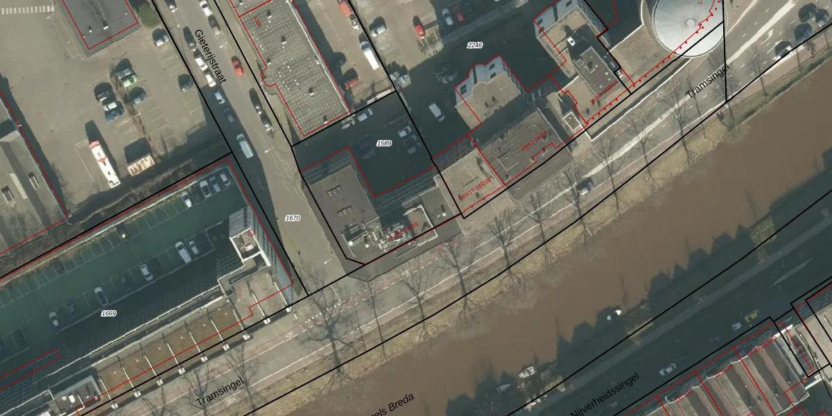 Het perceel waarop het adres ligt is BDA00-F-1589. De afkorting 'BDA00' staat voor kadastrale gemeente Breda. Het perceel is 975 m² groot. Dat is kleiner dan de gemiddelde perceeloppervlakte in Breda, dat op 1059,8 m² ligt. Het kleinste perceel in de kadastrale gemeente is 0 m² groot. De grootste perceeloppervlakte is 44,1 ha. Er zijn 12 adressen aanwezig op het perceel. De laatste wijziging in het de Basisregistratie Kadaster (BRK) was op 03-11-2006.