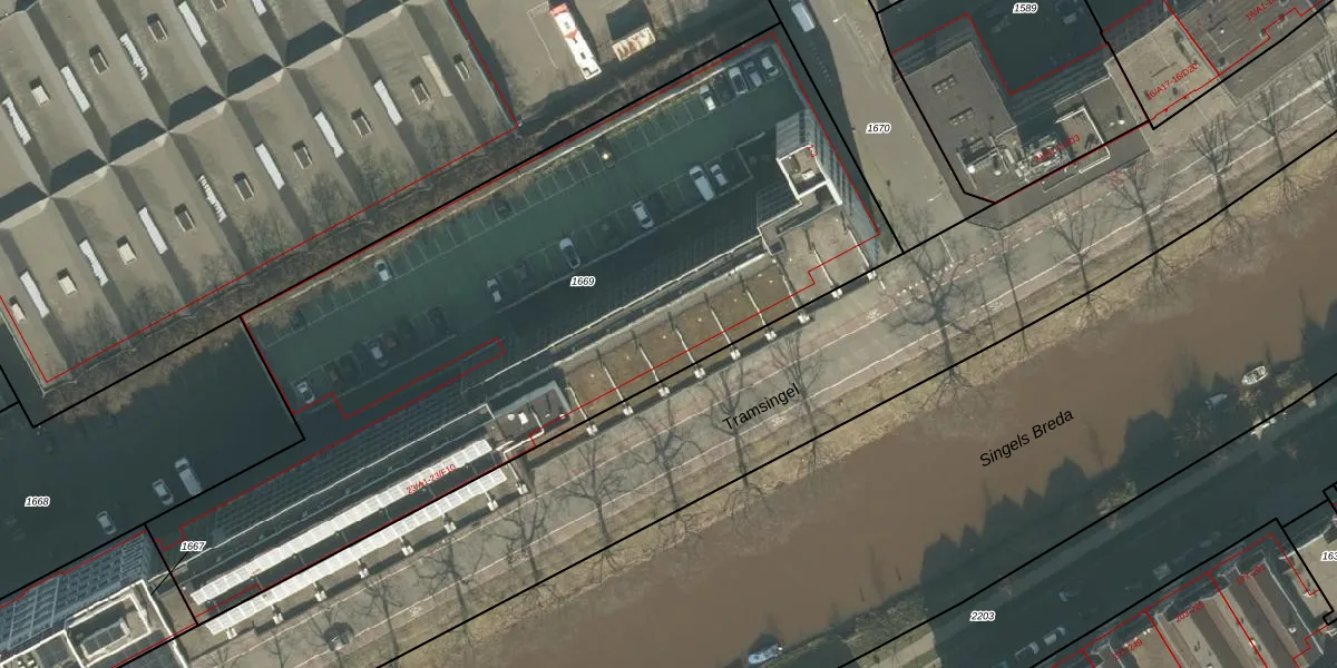 Tramsingel 23-B6 is gelegen op kadastraal perceel BDA00F1669. Deze kadastrale aanduiding is uniek en wordt gebruikt door het Kadaster om eigendomsrechten en andere zakelijke rechten vast te leggen. Het perceel maakt onderdeel uit van de kadastrale gemeente Breda.