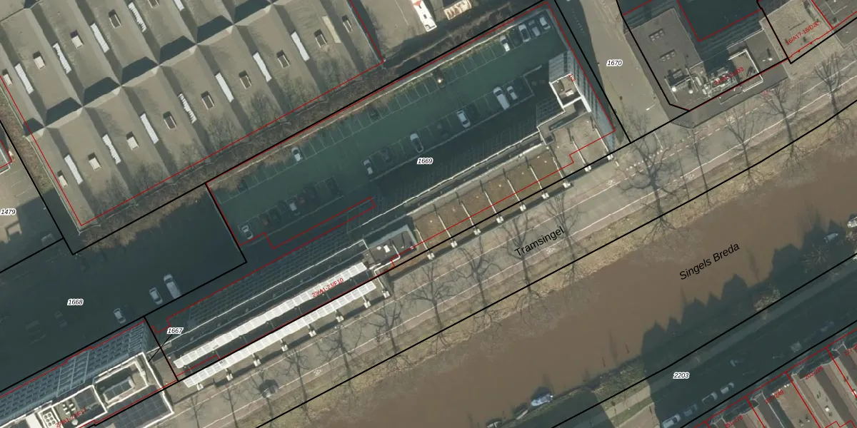 Tramsingel 23-D8 is gelegen op kadastraal perceel BDA00F1669. Deze kadastrale aanduiding is uniek en wordt gebruikt door het Kadaster om eigendomsrechten en andere zakelijke rechten vast te leggen. Het perceel maakt onderdeel uit van de kadastrale gemeente Breda.