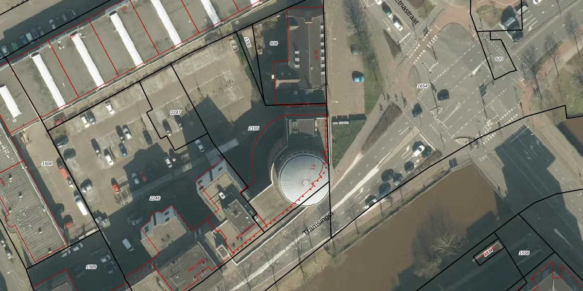 Het perceel waarop Tramsingel 4 staat heeft een oppervlakte van 1815 m². Dit is een zeer groot perceel. De perceeloppervlakte wordt geregistreerd door het Kadaster. Gedetailleerde informatie over de maten van dit perceel kunt u vinden in het rapport Kadastrale kaart met maatvoering van Tramsingel 4.