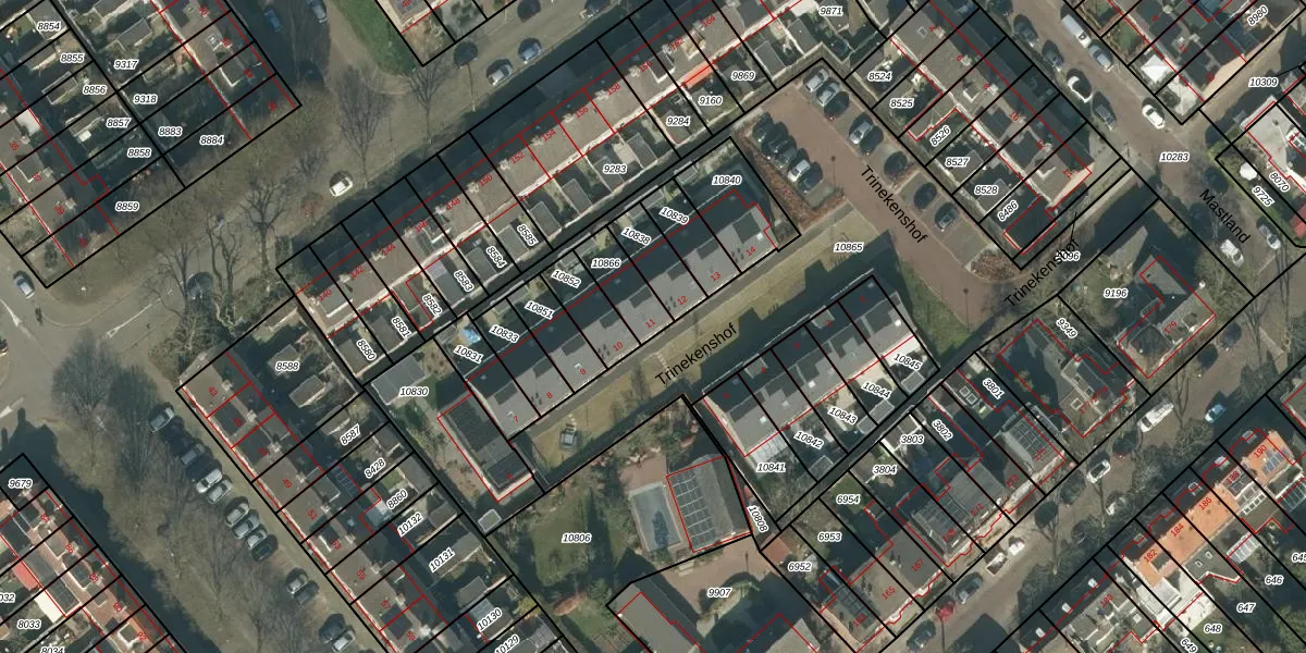 Het perceel waarop Trinekenshof 11 staat heeft een oppervlakte van 114 m². Dit is een middelgroot perceel. De perceeloppervlakte wordt geregistreerd door het Kadaster. Gedetailleerde informatie over de maten van dit perceel kunt u vinden in het rapport Kadastrale kaart met maatvoering van Trinekenshof 11.
