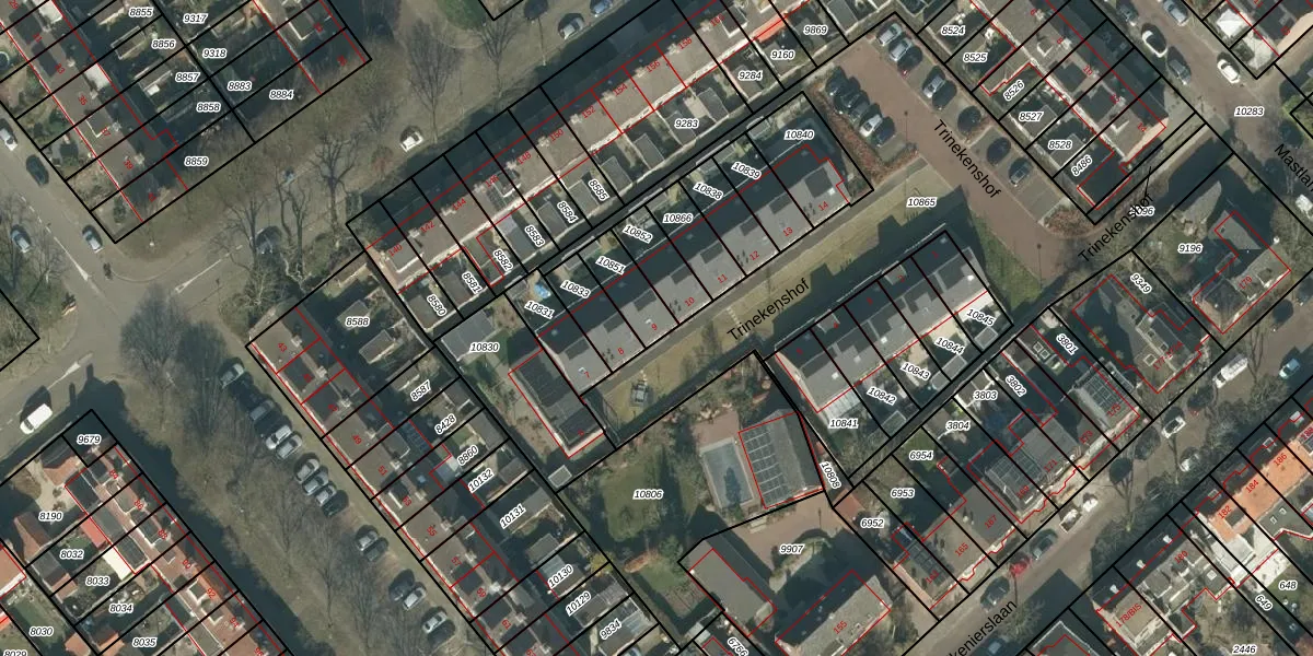 Trinekenshof 9 is gelegen op kadastraal perceel GNK02I10851. Deze kadastrale aanduiding is uniek en wordt gebruikt door het Kadaster om eigendomsrechten en andere zakelijke rechten vast te leggen. Het perceel maakt onderdeel uit van de kadastrale gemeente Ginneken.