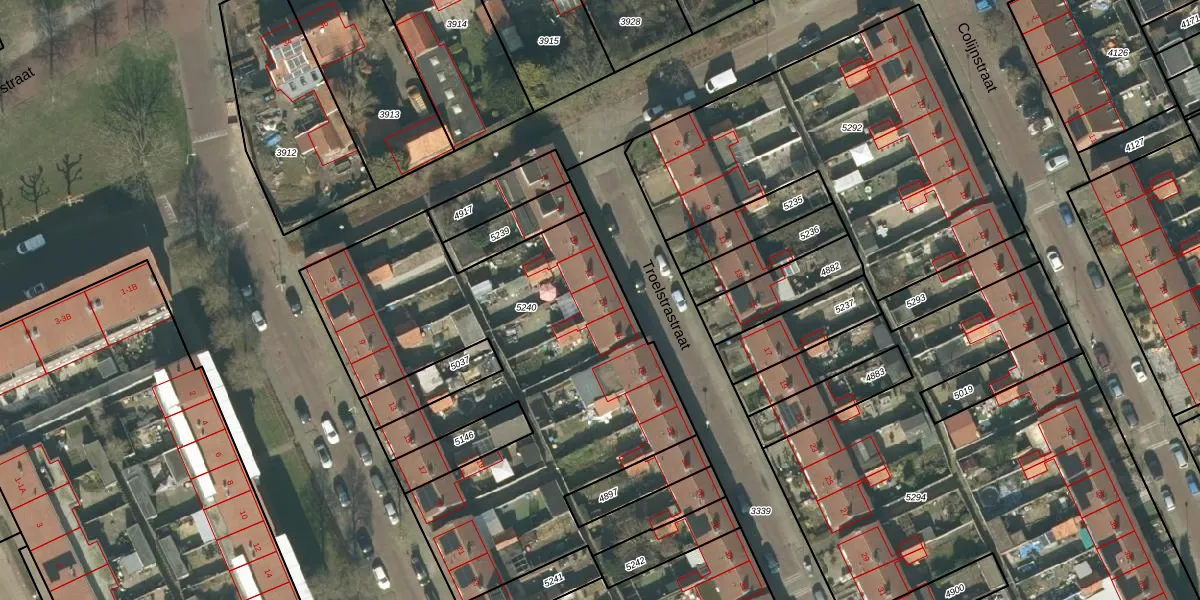 Het perceel waarop Troelstrastraat 14 staat heeft een oppervlakte van 2330 m². Dit is een zeer groot perceel. De perceeloppervlakte wordt geregistreerd door het Kadaster. Gedetailleerde informatie over de maten van dit perceel kunt u vinden in het rapport Kadastrale kaart met maatvoering van Troelstrastraat 14.