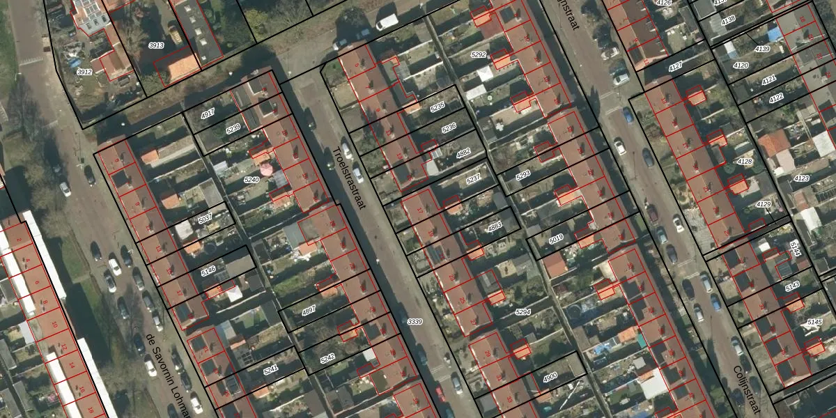 Het perceel waarop Troelstrastraat 17 staat heeft een oppervlakte van 199 m². Dit is een middelgroot perceel. De perceeloppervlakte wordt geregistreerd door het Kadaster. Gedetailleerde informatie over de maten van dit perceel kunt u vinden in het rapport Kadastrale kaart met maatvoering van Troelstrastraat 17.
