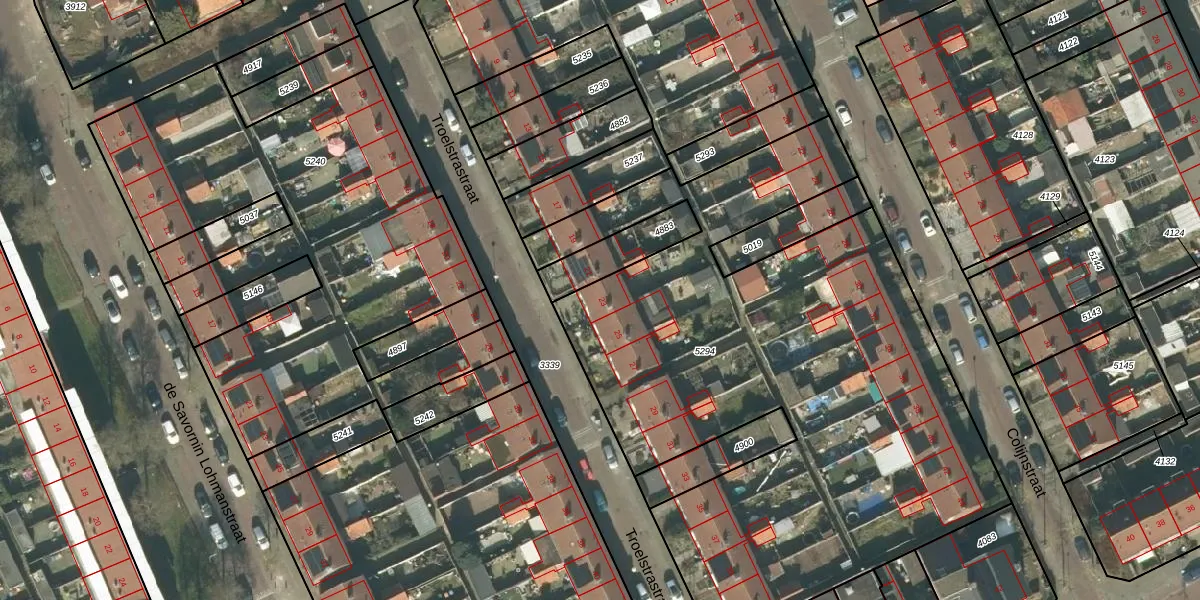 Het perceel waarop Troelstrastraat 23 staat heeft een oppervlakte van 3545 m². Dit is een zeer groot perceel. De perceeloppervlakte wordt geregistreerd door het Kadaster. Gedetailleerde informatie over de maten van dit perceel kunt u vinden in het rapport Kadastrale kaart met maatvoering van Troelstrastraat 23.