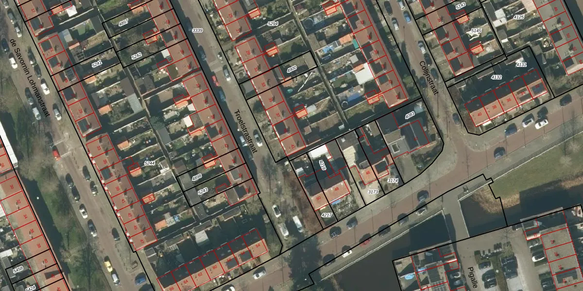 Het perceel waarop Troelstrastraat 41 staat heeft een oppervlakte van 3545 m². Dit is een zeer groot perceel. De perceeloppervlakte wordt geregistreerd door het Kadaster. Gedetailleerde informatie over de maten van dit perceel kunt u vinden in het rapport Kadastrale kaart met maatvoering van Troelstrastraat 41.