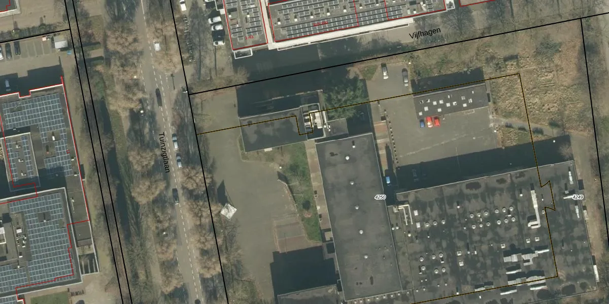 Het perceel waarop Tuinzigtlaan 12-C20 staat heeft een oppervlakte van 7341 m². Dit is een zeer groot perceel. De perceeloppervlakte wordt geregistreerd door het Kadaster. Gedetailleerde informatie over de maten van dit perceel kunt u vinden in het rapport Kadastrale kaart met maatvoering van Tuinzigtlaan 12-C20.