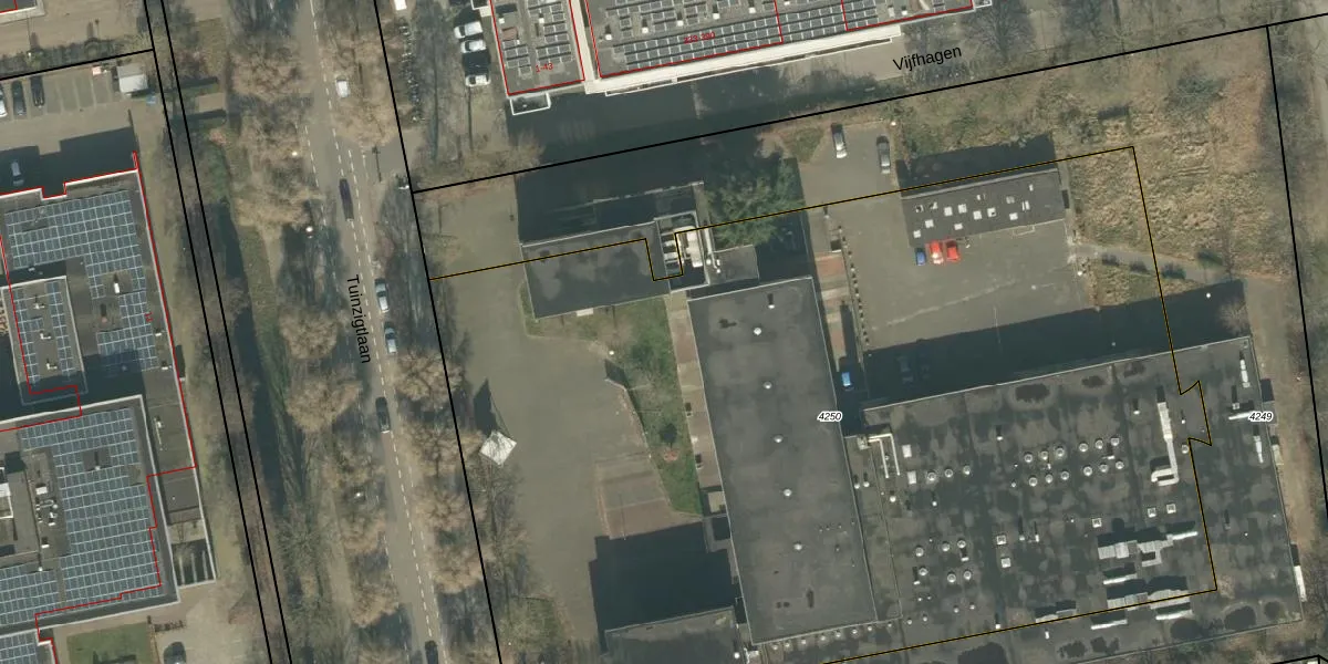 Het perceel waarop Tuinzigtlaan 12-D20 staat heeft een oppervlakte van 7341 m². Dit is een zeer groot perceel. De perceeloppervlakte wordt geregistreerd door het Kadaster. Gedetailleerde informatie over de maten van dit perceel kunt u vinden in het rapport Kadastrale kaart met maatvoering van Tuinzigtlaan 12-D20.