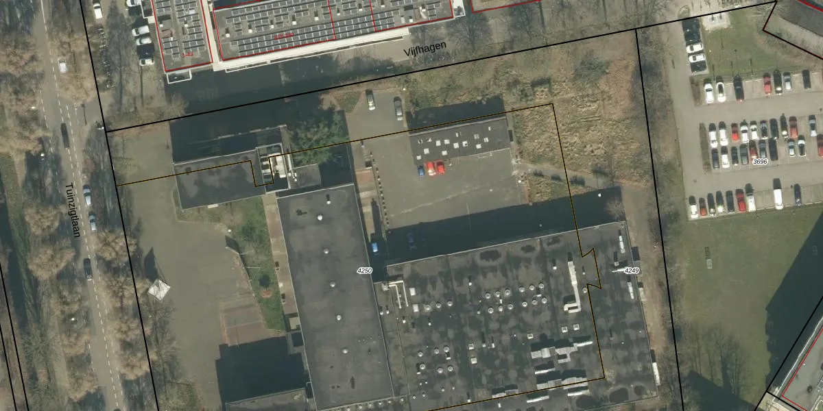 Tuinzigtlaan 12-E15 is gelegen op kadastraal perceel PCH00H4250. Deze kadastrale aanduiding is uniek en wordt gebruikt door het Kadaster om eigendomsrechten en andere zakelijke rechten vast te leggen. Het perceel maakt onderdeel uit van de kadastrale gemeente Princenhage.