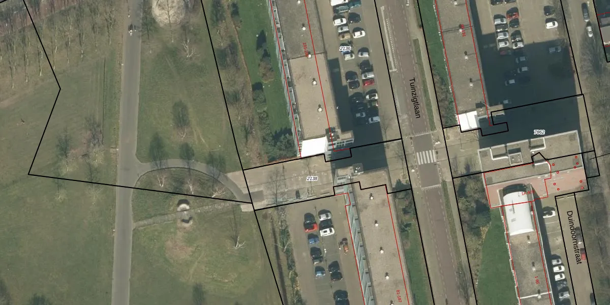 Het perceel waarop Tuinzigtlaan 251 staat heeft een oppervlakte van 3755 m². Dit is een zeer groot perceel. De perceeloppervlakte wordt geregistreerd door het Kadaster. Gedetailleerde informatie over de maten van dit perceel kunt u vinden in het rapport Kadastrale kaart met maatvoering van Tuinzigtlaan 251.