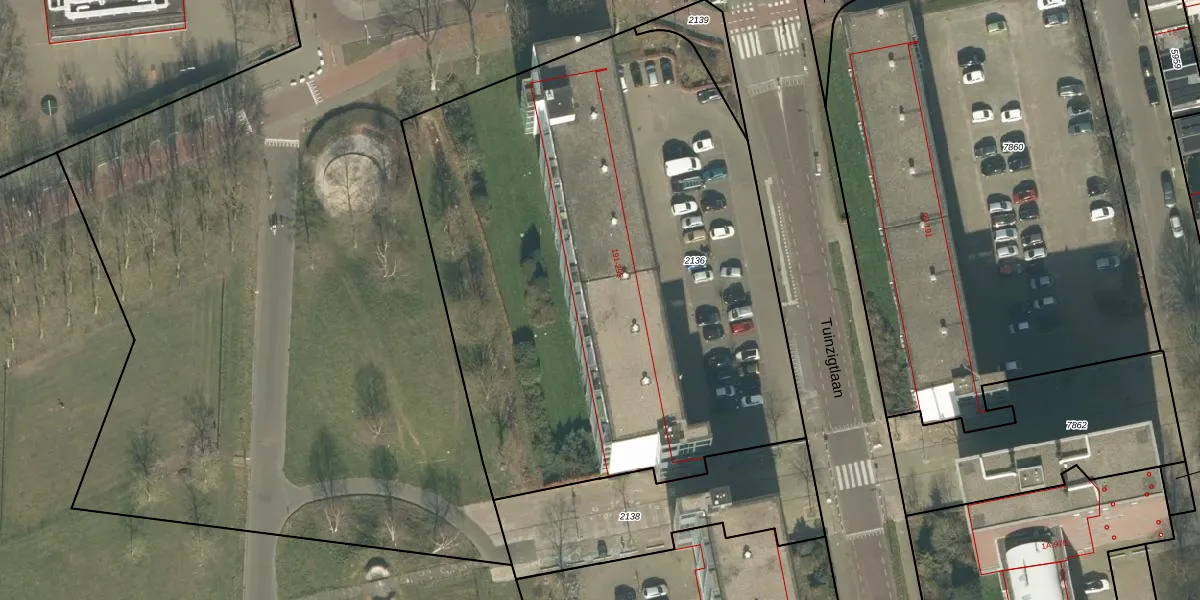 Het perceel waarop Tuinzigtlaan 269 staat heeft een oppervlakte van 3755 m². Dit is een zeer groot perceel. De perceeloppervlakte wordt geregistreerd door het Kadaster. Gedetailleerde informatie over de maten van dit perceel kunt u vinden in het rapport Kadastrale kaart met maatvoering van Tuinzigtlaan 269.