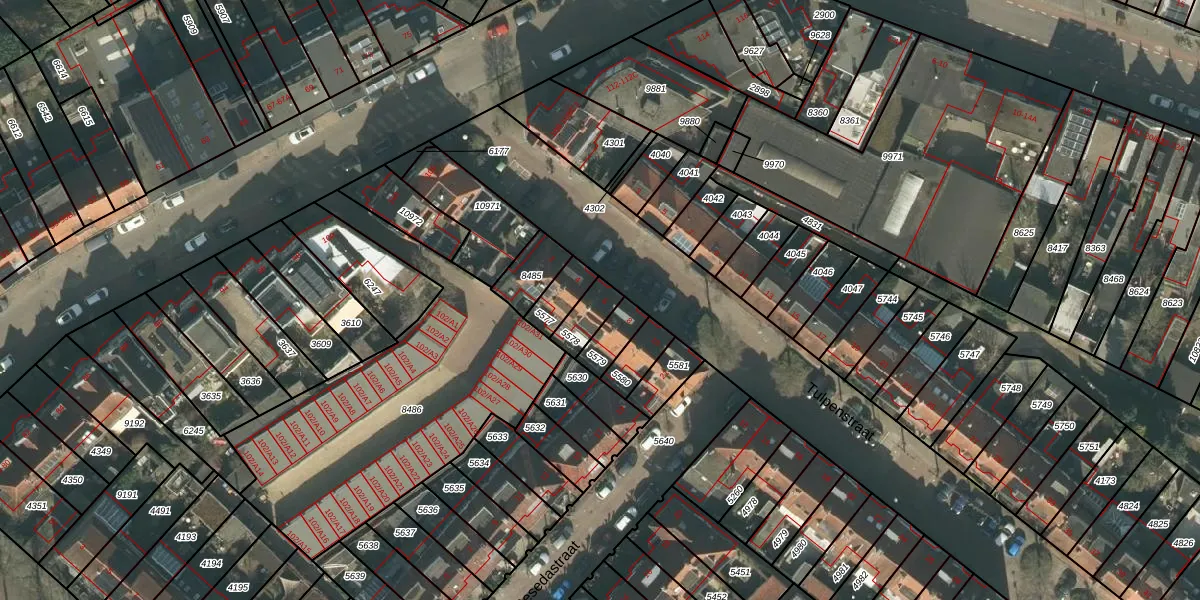 Gebruik de zoekbalk of klik op een perceel voor informatie over de adressen binnen dit perceel.
