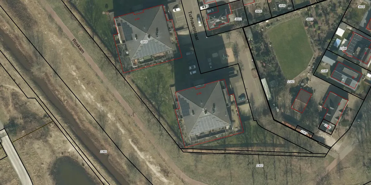 Het perceel waarop Turfvaartstraat 8 staat heeft een oppervlakte van 7451 m². Dit is een zeer groot perceel. De perceeloppervlakte wordt geregistreerd door het Kadaster. Gedetailleerde informatie over de maten van dit perceel kunt u vinden in het rapport Kadastrale kaart met maatvoering van Turfvaartstraat 8.