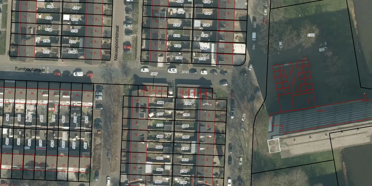 Turnhoutstraat 54 is gelegen op kadastraal perceel BDA00G2780. Deze kadastrale aanduiding is uniek en wordt gebruikt door het Kadaster om eigendomsrechten en andere zakelijke rechten vast te leggen. Het perceel maakt onderdeel uit van de kadastrale gemeente Breda.