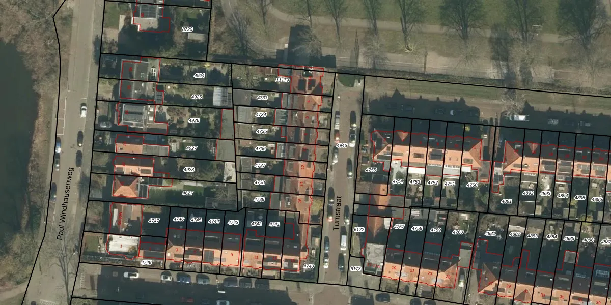 Het perceel waarop Turnstraat 10 staat heeft een oppervlakte van 173 m². Dit is een middelgroot perceel. De perceeloppervlakte wordt geregistreerd door het Kadaster. Gedetailleerde informatie over de maten van dit perceel kunt u vinden in het rapport Kadastrale kaart met maatvoering van Turnstraat 10.