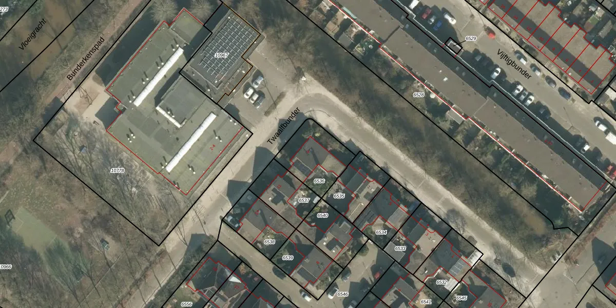Het perceel waarop Twaalfbunder 9 staat heeft een oppervlakte van 357 m². Dit is een groot perceel. De perceeloppervlakte wordt geregistreerd door het Kadaster. Gedetailleerde informatie over de maten van dit perceel kunt u vinden in het rapport Kadastrale kaart met maatvoering van Twaalfbunder 9.