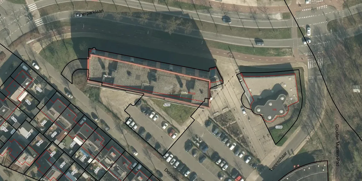 Het perceel waarop Tweeschaar 101 staat heeft een oppervlakte van 2244 m². Dit is een zeer groot perceel. De perceeloppervlakte wordt geregistreerd door het Kadaster. Gedetailleerde informatie over de maten van dit perceel kunt u vinden in het rapport Kadastrale kaart met maatvoering van Tweeschaar 101.