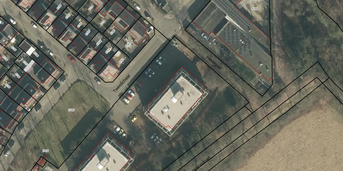 Het perceel waarop Tweeschaar 2-A staat heeft een oppervlakte van 8120 m². Dit is een zeer groot perceel. De perceeloppervlakte wordt geregistreerd door het Kadaster. Gedetailleerde informatie over de maten van dit perceel kunt u vinden in het rapport Kadastrale kaart met maatvoering van Tweeschaar 2-A.