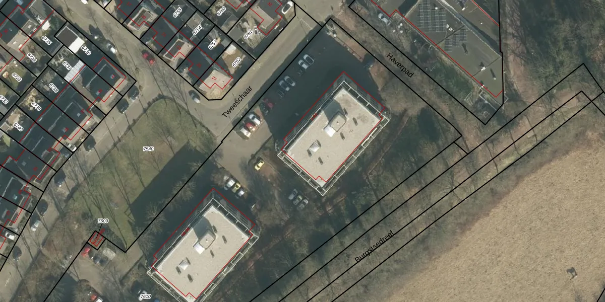 Tweeschaar 6-E is gelegen op kadastraal perceel BDA00H7610. Deze kadastrale aanduiding is uniek en wordt gebruikt door het Kadaster om eigendomsrechten en andere zakelijke rechten vast te leggen. Het perceel maakt onderdeel uit van de kadastrale gemeente Breda.