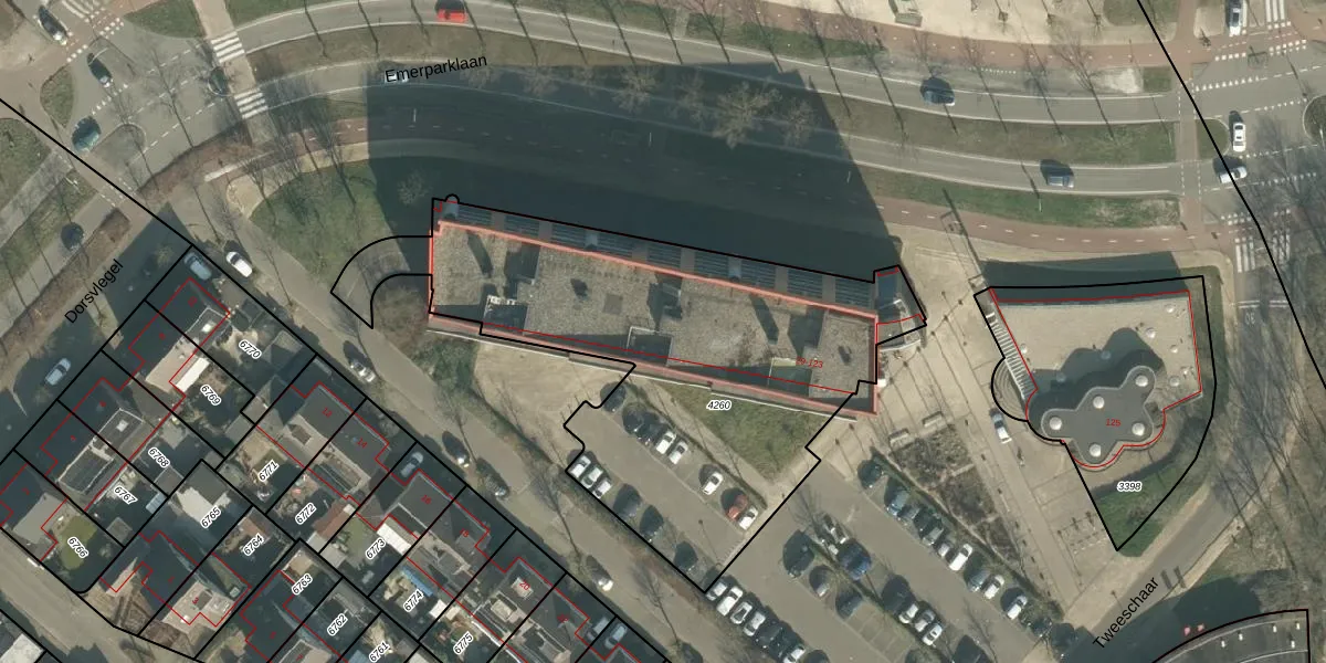 Het perceel waarop Tweeschaar 77 staat heeft een oppervlakte van 2244 m². Dit is een zeer groot perceel. De perceeloppervlakte wordt geregistreerd door het Kadaster. Gedetailleerde informatie over de maten van dit perceel kunt u vinden in het rapport Kadastrale kaart met maatvoering van Tweeschaar 77.