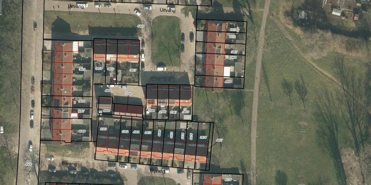 Gebruik de zoekbalk of klik op een perceel voor informatie over de adressen binnen dit perceel.