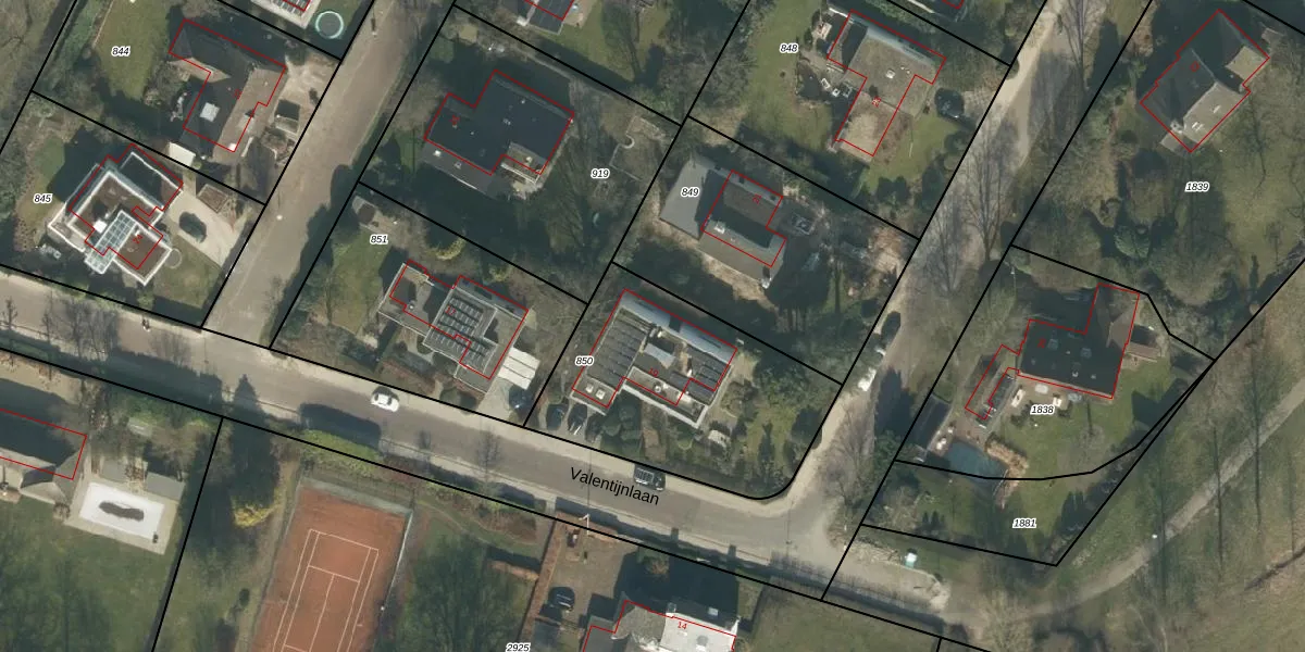 Het perceel waarop Valentijnlaan 19 staat heeft een oppervlakte van 1001 m². Dit is een zeer groot perceel. De perceeloppervlakte wordt geregistreerd door het Kadaster. Gedetailleerde informatie over de maten van dit perceel kunt u vinden in het rapport Kadastrale kaart met maatvoering van Valentijnlaan 19.
