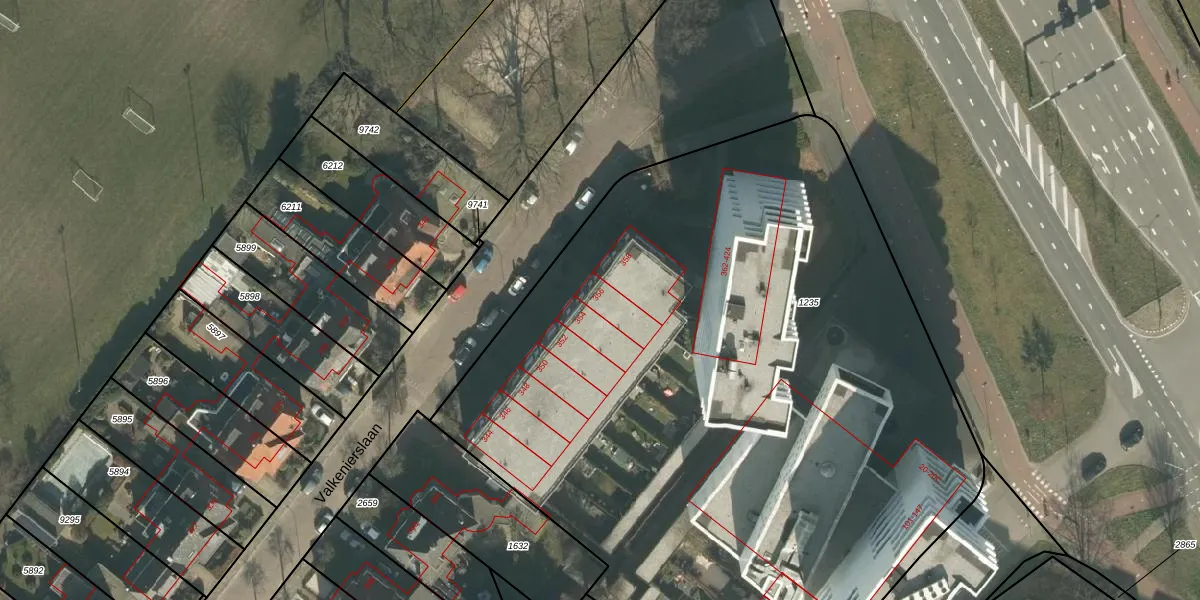 Het perceel waarop Valkenierslaan 356 staat heeft een oppervlakte van 5448 m². Dit is een zeer groot perceel. De perceeloppervlakte wordt geregistreerd door het Kadaster. Gedetailleerde informatie over de maten van dit perceel kunt u vinden in het rapport Kadastrale kaart met maatvoering van Valkenierslaan 356.