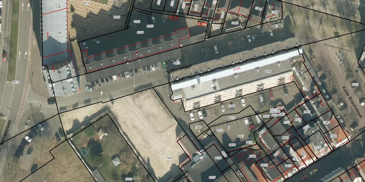Valkenstraat 16 is gelegen op kadastraal perceel BDA00B8209. Deze kadastrale aanduiding is uniek en wordt gebruikt door het Kadaster om eigendomsrechten en andere zakelijke rechten vast te leggen. Het perceel maakt onderdeel uit van de kadastrale gemeente Breda.