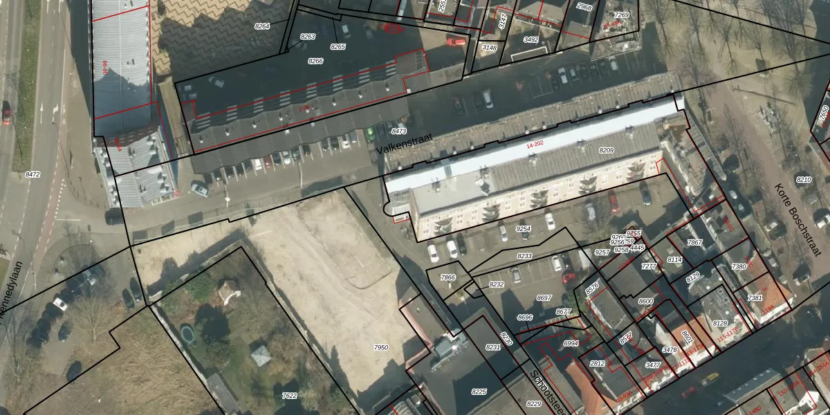 Valkenstraat 18 is gelegen op kadastraal perceel BDA00B8209. Deze kadastrale aanduiding is uniek en wordt gebruikt door het Kadaster om eigendomsrechten en andere zakelijke rechten vast te leggen. Het perceel maakt onderdeel uit van de kadastrale gemeente Breda.