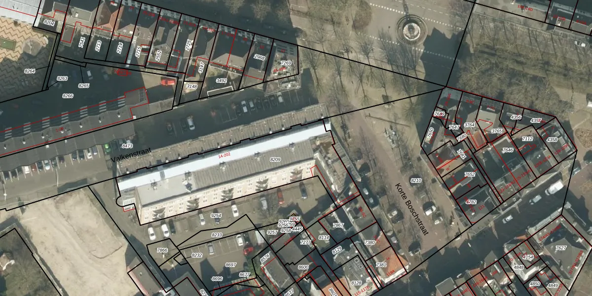 Valkenstraat 184 is gelegen op kadastraal perceel BDA00B8209. Deze kadastrale aanduiding is uniek en wordt gebruikt door het Kadaster om eigendomsrechten en andere zakelijke rechten vast te leggen. Het perceel maakt onderdeel uit van de kadastrale gemeente Breda.