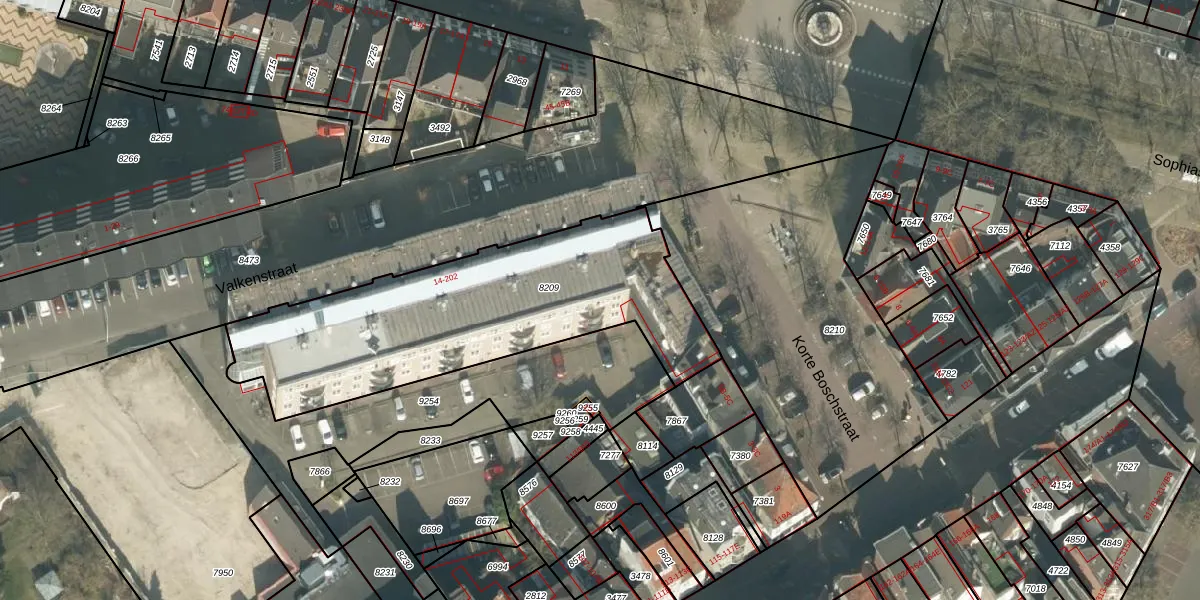 Valkenstraat 188 is gelegen op kadastraal perceel BDA00B8209. Deze kadastrale aanduiding is uniek en wordt gebruikt door het Kadaster om eigendomsrechten en andere zakelijke rechten vast te leggen. Het perceel maakt onderdeel uit van de kadastrale gemeente Breda.