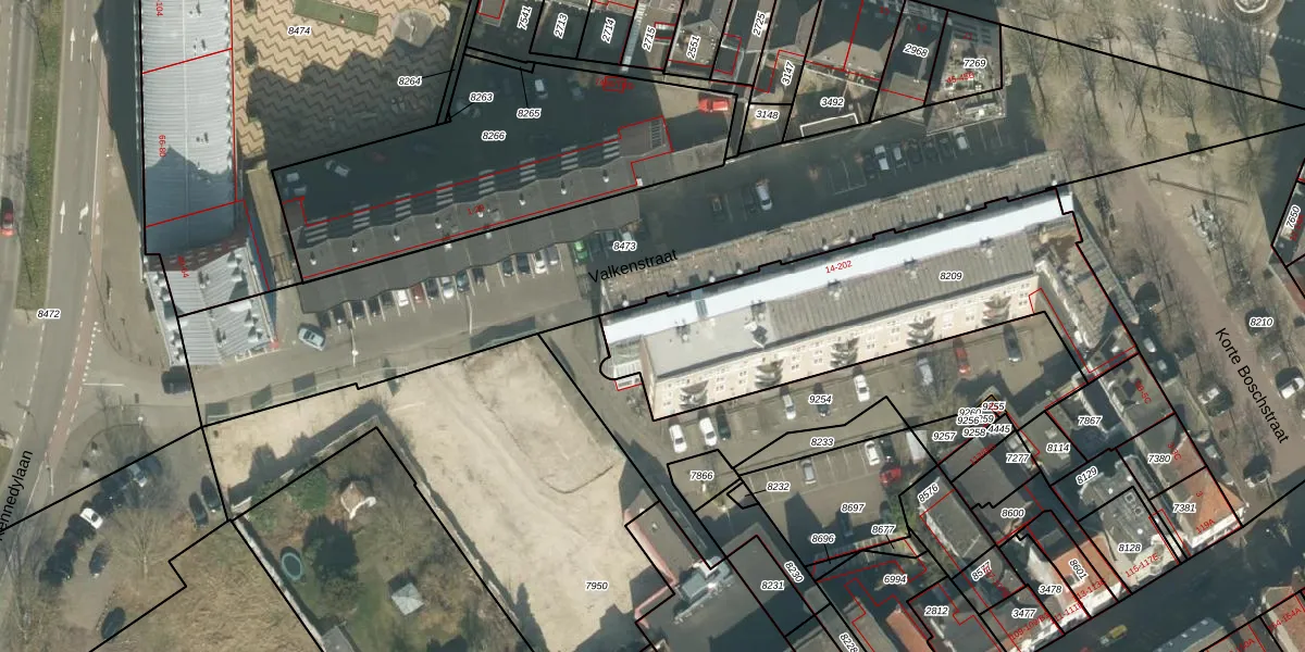 Valkenstraat 22 is gelegen op kadastraal perceel BDA00B8209. Deze kadastrale aanduiding is uniek en wordt gebruikt door het Kadaster om eigendomsrechten en andere zakelijke rechten vast te leggen. Het perceel maakt onderdeel uit van de kadastrale gemeente Breda.
