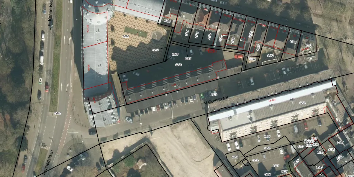 Valkenstraat 25 is gelegen op kadastraal perceel BDA00B8266. Deze kadastrale aanduiding is uniek en wordt gebruikt door het Kadaster om eigendomsrechten en andere zakelijke rechten vast te leggen. Het perceel maakt onderdeel uit van de kadastrale gemeente Breda.
