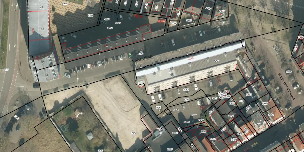 Valkenstraat 32 is gelegen op kadastraal perceel BDA00B8209. Deze kadastrale aanduiding is uniek en wordt gebruikt door het Kadaster om eigendomsrechten en andere zakelijke rechten vast te leggen. Het perceel maakt onderdeel uit van de kadastrale gemeente Breda.