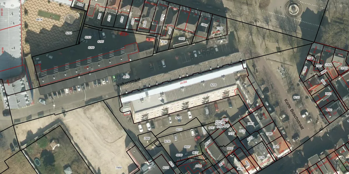 Valkenstraat 94 is gelegen op kadastraal perceel BDA00B8209. Deze kadastrale aanduiding is uniek en wordt gebruikt door het Kadaster om eigendomsrechten en andere zakelijke rechten vast te leggen. Het perceel maakt onderdeel uit van de kadastrale gemeente Breda.
