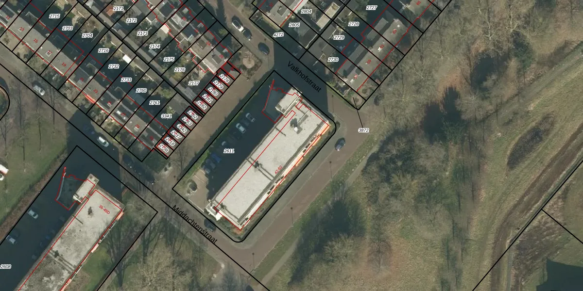 Het perceel waarop Valkhofstraat 44-C staat heeft een oppervlakte van 1595 m². Dit is een zeer groot perceel. De perceeloppervlakte wordt geregistreerd door het Kadaster. Gedetailleerde informatie over de maten van dit perceel kunt u vinden in het rapport Kadastrale kaart met maatvoering van Valkhofstraat 44-C.