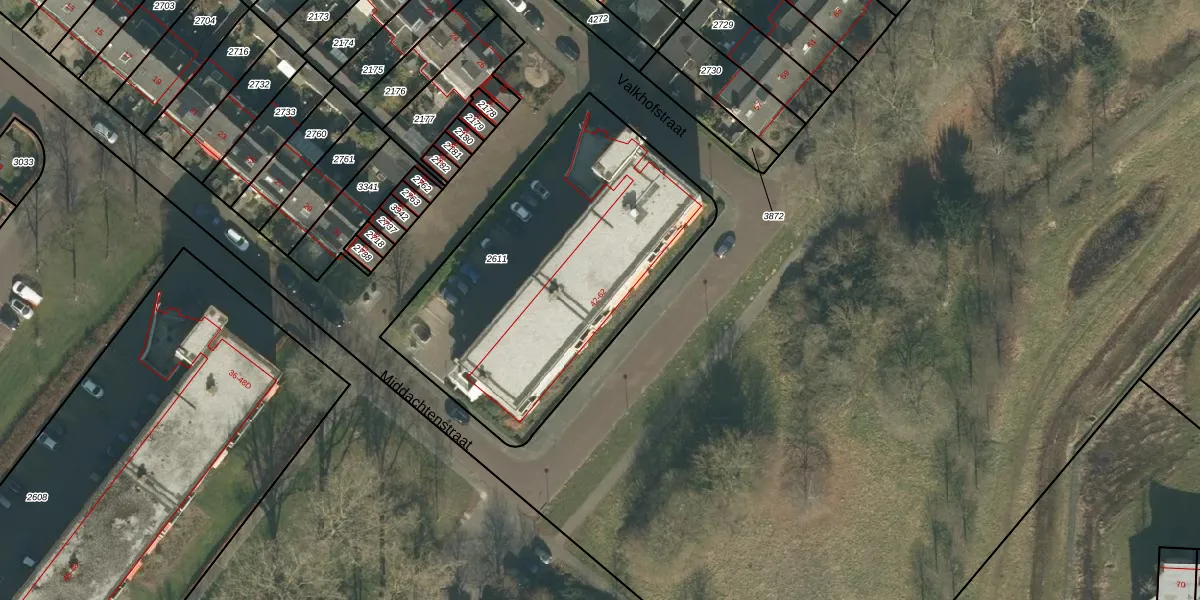 Het perceel waarop Valkhofstraat 46 staat heeft een oppervlakte van 1595 m². Dit is een zeer groot perceel. De perceeloppervlakte wordt geregistreerd door het Kadaster. Gedetailleerde informatie over de maten van dit perceel kunt u vinden in het rapport Kadastrale kaart met maatvoering van Valkhofstraat 46.