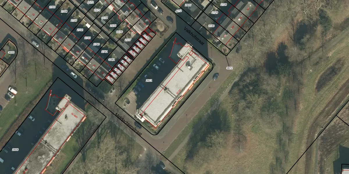 Het perceel waarop Valkhofstraat 46-B staat heeft een oppervlakte van 1595 m². Dit is een zeer groot perceel. De perceeloppervlakte wordt geregistreerd door het Kadaster. Gedetailleerde informatie over de maten van dit perceel kunt u vinden in het rapport Kadastrale kaart met maatvoering van Valkhofstraat 46-B.