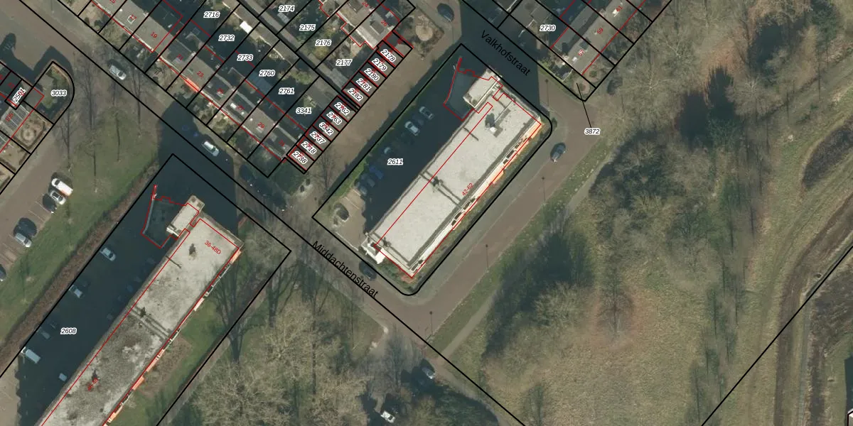 Het perceel waarop Valkhofstraat 48-B staat heeft een oppervlakte van 1595 m². Dit is een zeer groot perceel. De perceeloppervlakte wordt geregistreerd door het Kadaster. Gedetailleerde informatie over de maten van dit perceel kunt u vinden in het rapport Kadastrale kaart met maatvoering van Valkhofstraat 48-B.