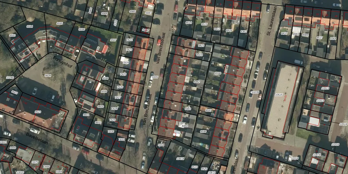 Het perceel waarop van Brechtstraat 11 staat heeft een oppervlakte van 630 m². Dit is een groot perceel. De perceeloppervlakte wordt geregistreerd door het Kadaster. Gedetailleerde informatie over de maten van dit perceel kunt u vinden in het rapport Kadastrale kaart met maatvoering van van Brechtstraat 11.