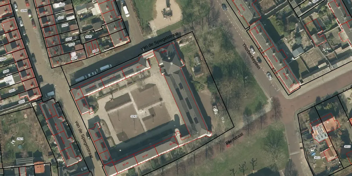 Het perceel waarop van de Spiegelstraat 59 staat heeft een oppervlakte van 4765 m². Dit is een zeer groot perceel. De perceeloppervlakte wordt geregistreerd door het Kadaster. Gedetailleerde informatie over de maten van dit perceel kunt u vinden in het rapport Kadastrale kaart met maatvoering van van de Spiegelstraat 59.