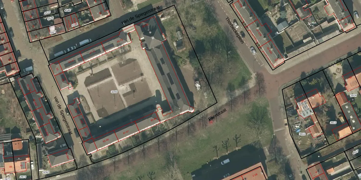 van de Spiegelstraat 63 is gelegen op kadastraal perceel PCH00I3243. Deze kadastrale aanduiding is uniek en wordt gebruikt door het Kadaster om eigendomsrechten en andere zakelijke rechten vast te leggen. Het perceel maakt onderdeel uit van de kadastrale gemeente Princenhage.