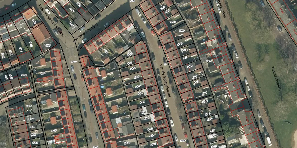 van de Spiegelstraat 8 is gelegen op kadastraal perceel PCH00I5536. Deze kadastrale aanduiding is uniek en wordt gebruikt door het Kadaster om eigendomsrechten en andere zakelijke rechten vast te leggen. Het perceel maakt onderdeel uit van de kadastrale gemeente Princenhage.