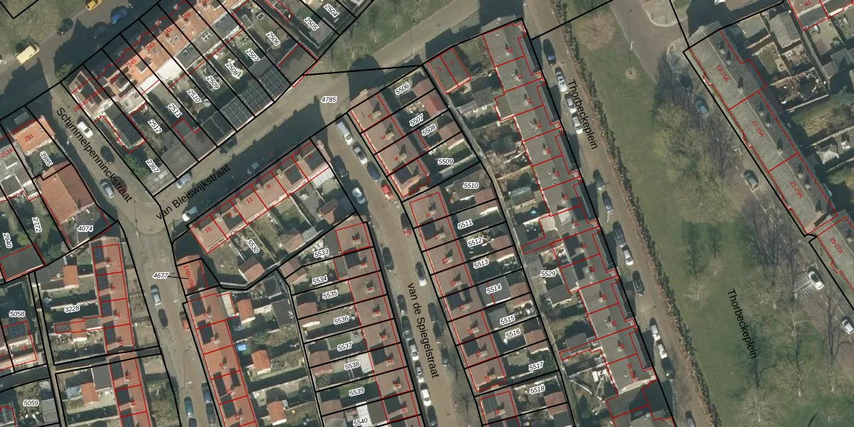 van de Spiegelstraat 9 is gelegen op kadastraal perceel PCH00I5510. Deze kadastrale aanduiding is uniek en wordt gebruikt door het Kadaster om eigendomsrechten en andere zakelijke rechten vast te leggen. Het perceel maakt onderdeel uit van de kadastrale gemeente Princenhage.