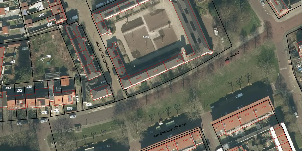 van de Spiegelstraat 97 is gelegen op kadastraal perceel PCH00I3243. Deze kadastrale aanduiding is uniek en wordt gebruikt door het Kadaster om eigendomsrechten en andere zakelijke rechten vast te leggen. Het perceel maakt onderdeel uit van de kadastrale gemeente Princenhage.
