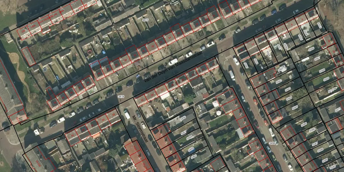 Het perceel waarop van der Duyn van Maasdamstraat 25 staat heeft een oppervlakte van 3983 m². Dit is een zeer groot perceel. De perceeloppervlakte wordt geregistreerd door het Kadaster. Gedetailleerde informatie over de maten van dit perceel kunt u vinden in het rapport Kadastrale kaart met maatvoering van van der Duyn van Maasdamstraat 25.