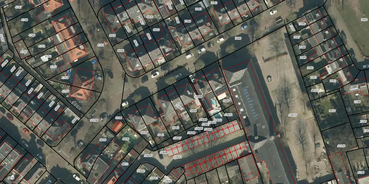 van Gaverenlaan 10 is gelegen op kadastraal perceel GNK02I5944. Deze kadastrale aanduiding is uniek en wordt gebruikt door het Kadaster om eigendomsrechten en andere zakelijke rechten vast te leggen. Het perceel maakt onderdeel uit van de kadastrale gemeente Ginneken.