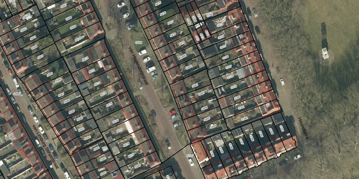 van Hogendorpstraat 45 is gelegen op kadastraal perceel PCH00I5482. Deze kadastrale aanduiding is uniek en wordt gebruikt door het Kadaster om eigendomsrechten en andere zakelijke rechten vast te leggen. Het perceel maakt onderdeel uit van de kadastrale gemeente Princenhage.