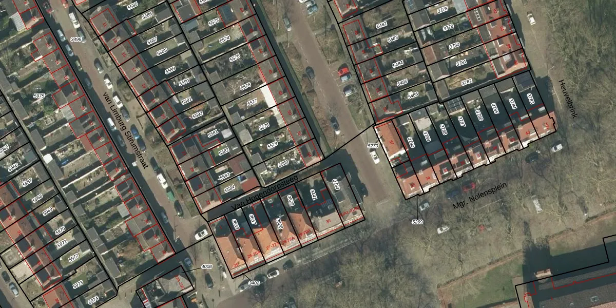 van Hogendorpstraat 54 is gelegen op kadastraal perceel PCH00I5580. Deze kadastrale aanduiding is uniek en wordt gebruikt door het Kadaster om eigendomsrechten en andere zakelijke rechten vast te leggen. Het perceel maakt onderdeel uit van de kadastrale gemeente Princenhage.