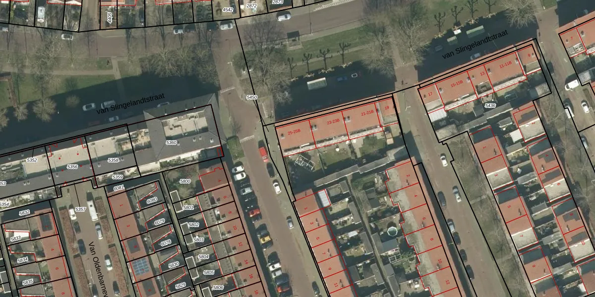 van Slingelandtstraat 25-B is gelegen op kadastraal perceel PCH00I5449. Deze kadastrale aanduiding is uniek en wordt gebruikt door het Kadaster om eigendomsrechten en andere zakelijke rechten vast te leggen. Het perceel maakt onderdeel uit van de kadastrale gemeente Princenhage.